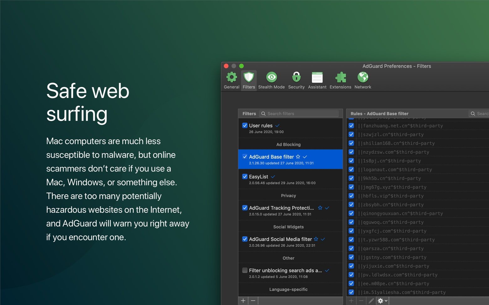 AdGuard is more than just an app for blocking online ads. It is a full-featured privacy assistant that protects you from tracking, phishing, and all types of fraud, while allowing you to adjust the levels of protection yourself. The app is designed for macOS and works with all browsers. Your Mac deserves this powerful protective shield.
