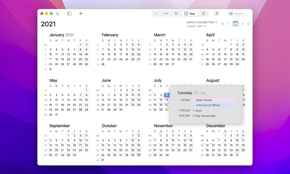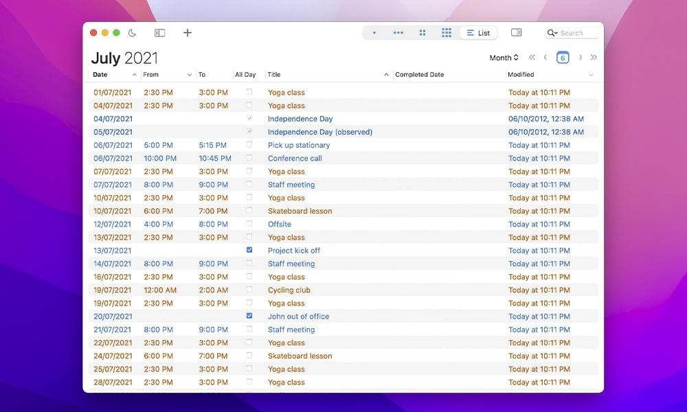 Easily add and edit events with BusyCal’s dashboard. It occupies the sidebar of the app and lets you update entries, times, tags, and locations, among other things. The best part is that the dashboard is highly customizable, allowing you to tailor important information to your specific events.