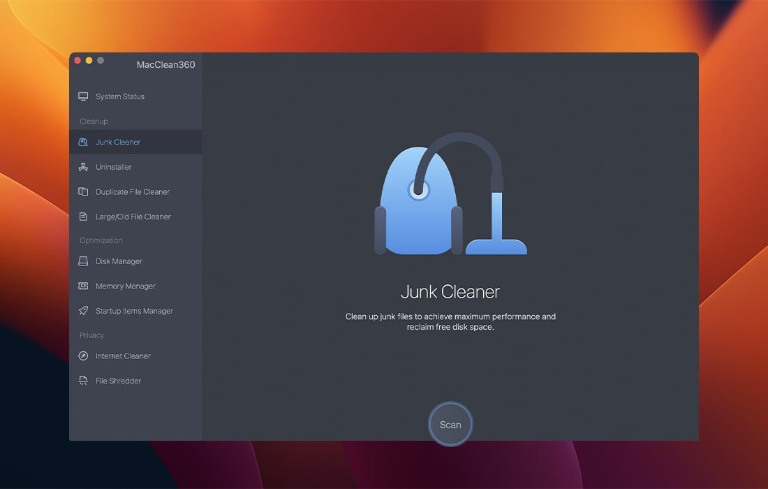 MacClean360 is an all-in-one Mac cleaner and manager. It can not only find and remove all the junk files on your Mac, but also help you optimize, speed up and manage your Mac.