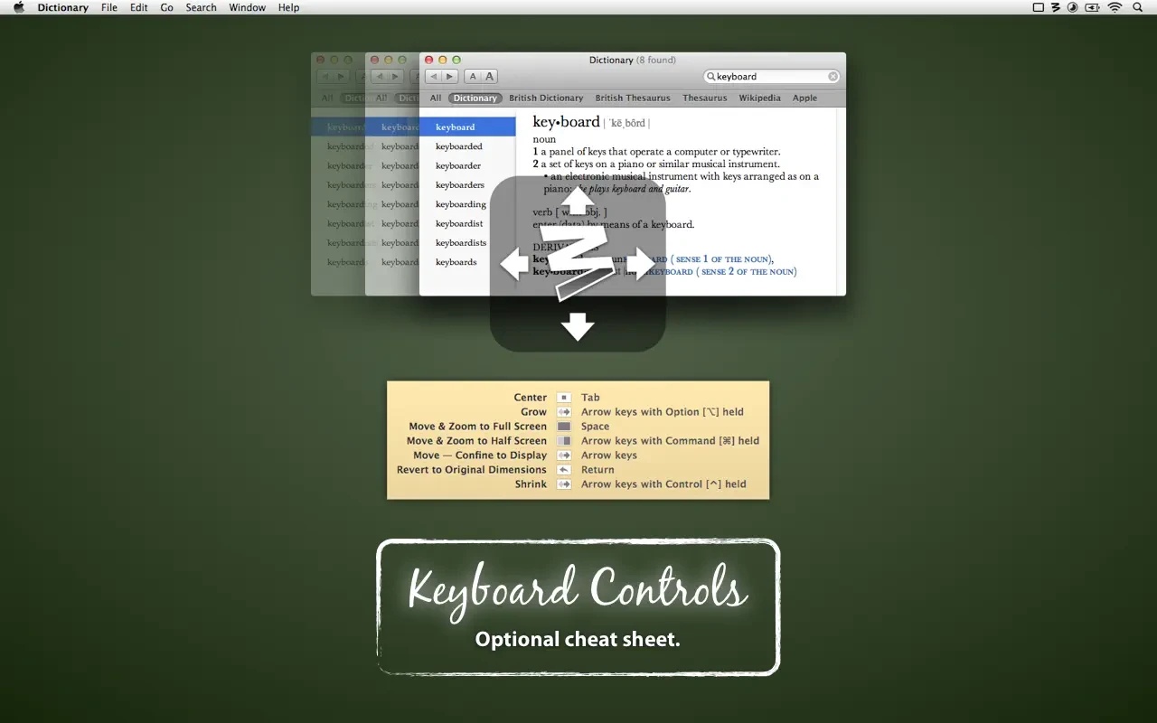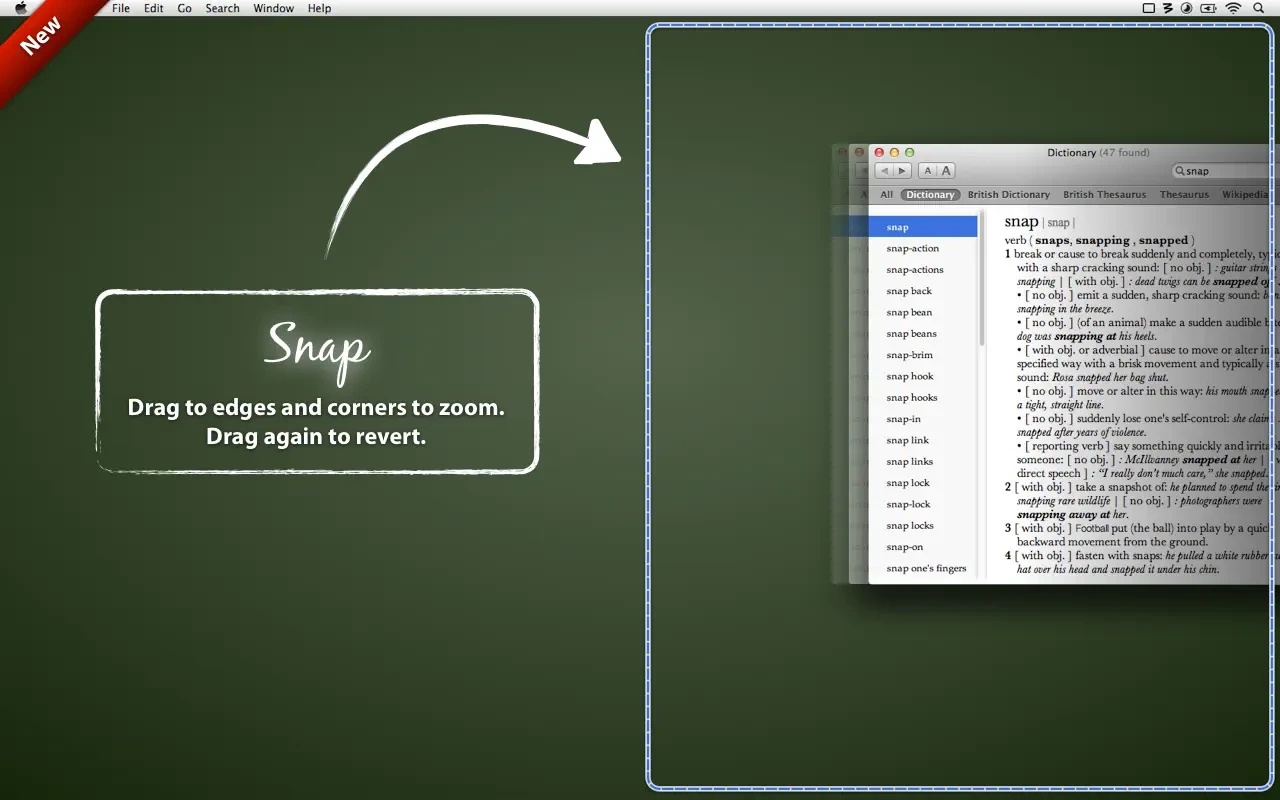 The standard set of templates allows you to expand the window to full screen with one click of the mouse or vice versa, only half, moving to one side of the screen. It should be said that in this regard, the functionality of Moom echoes the functionality of another well-known utility called Cinch. This utility offers to do the same with the window, only for this it is necessary to move it to the desired side of the screen.