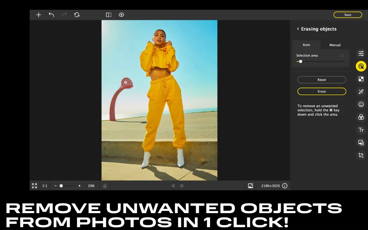 Get rid of everything unnecessary in your photo without leaving a trace, be it trash, an inscription or a random passerby.