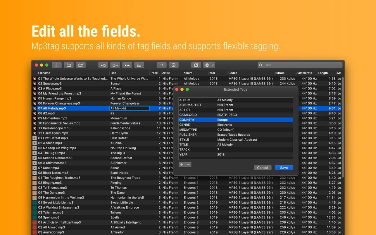Mp3tag is a powerful and easy-to-use tool for editing audio file metadata. Musicians, DJs, podcasters and audio enthusiasts use it for many different aspects of audio file processing.