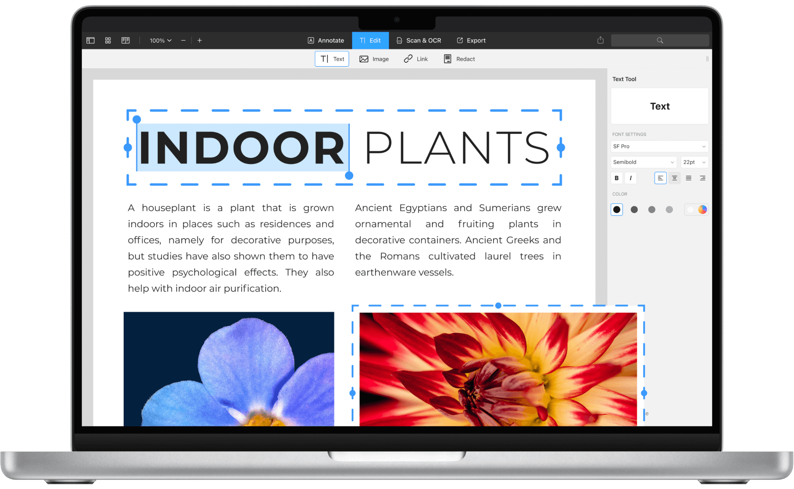 Make edits to contracts and resumes, easily correct typos in text, edit images, add links and create content.