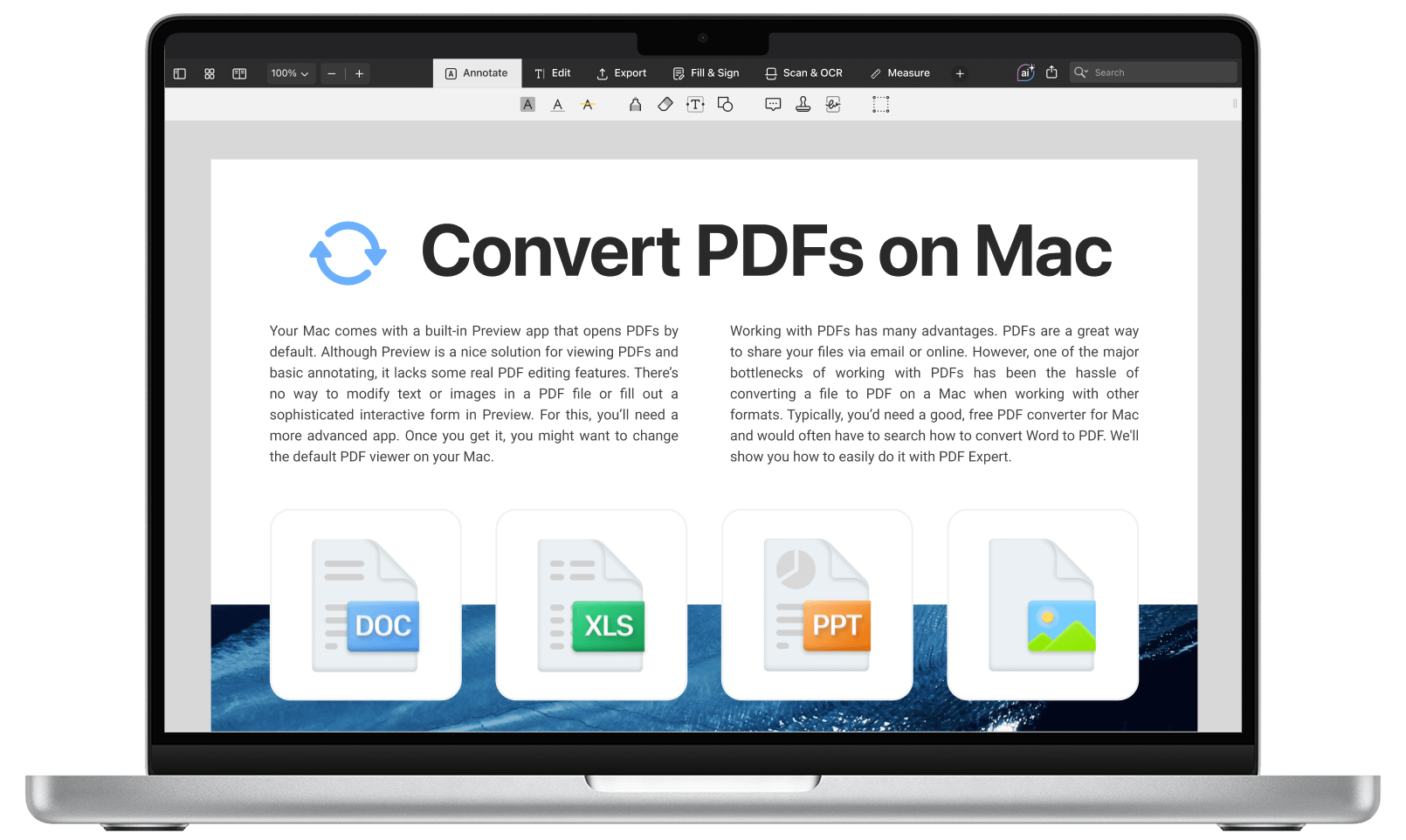 Share files with your colleagues and friends, whether you are at work or at home. With built-in file sharing between Mac and iPad/iPhone, transferring data from PDF Expert to other applications is smooth and fast. If the receiving application supports PDF, PDF Expert will transfer the file easily.