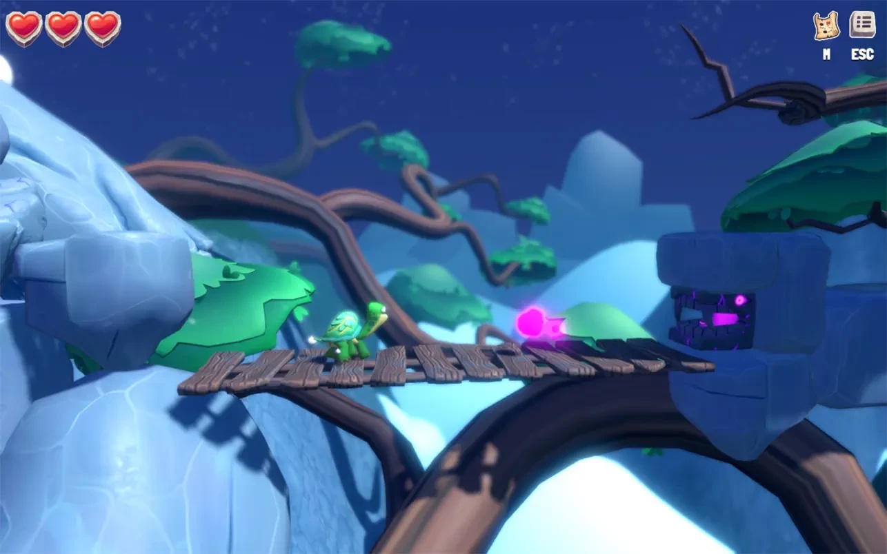 In this adventure arcade game, two turtles have to find each other on a tropical island in the middle of the ocean. But the island is not as simple as it seems: a curse cast on it turns animals and natural objects into evil monsters and difficult obstacles.