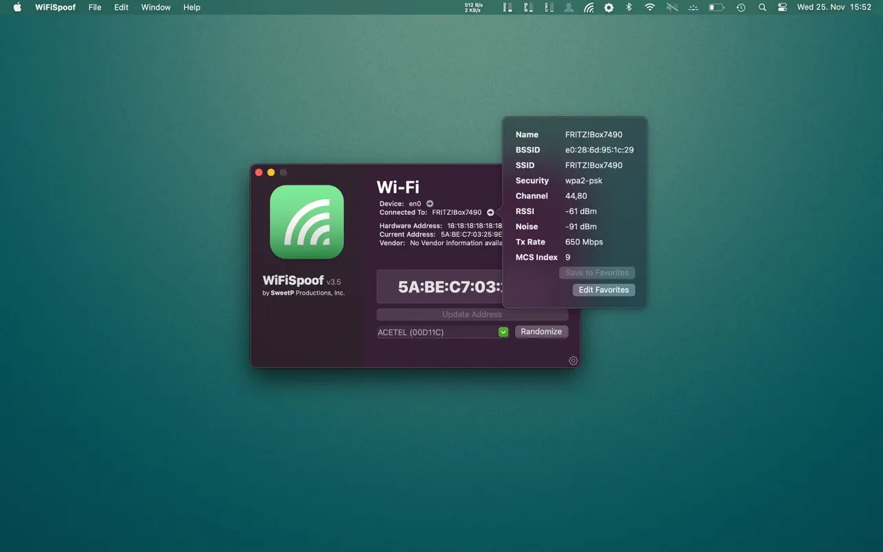 WiFiSpoof is the best system network tool that gives you a quick overview of the current status of your Mac’s network devices.
