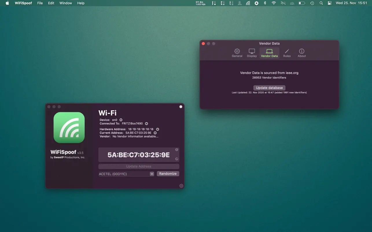 Easily change your Wi-Fi/Ethernet MAC address – no need to fiddle with Terminal. Generate completely random or vendor-specific MAC addresses using the built-in vendor database.